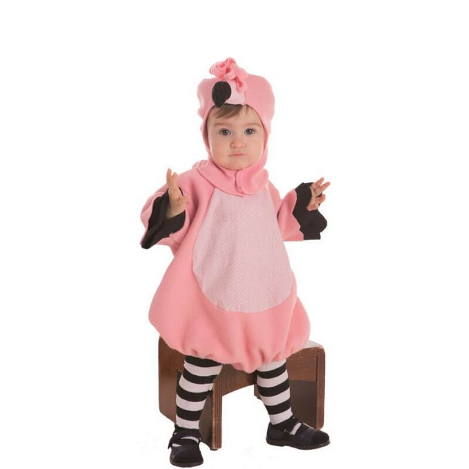 Disfraz de Flamenco Rosa para bebé. Incluye mono y capucha. No incluye calzado.