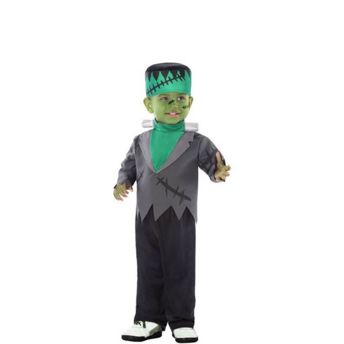 Disfraz de Monstruo Franky para niño y bebé. Incluye pantalón, camisa y gorro. No incluye calzado. Perfecto en fiestas del terror como Halloween.