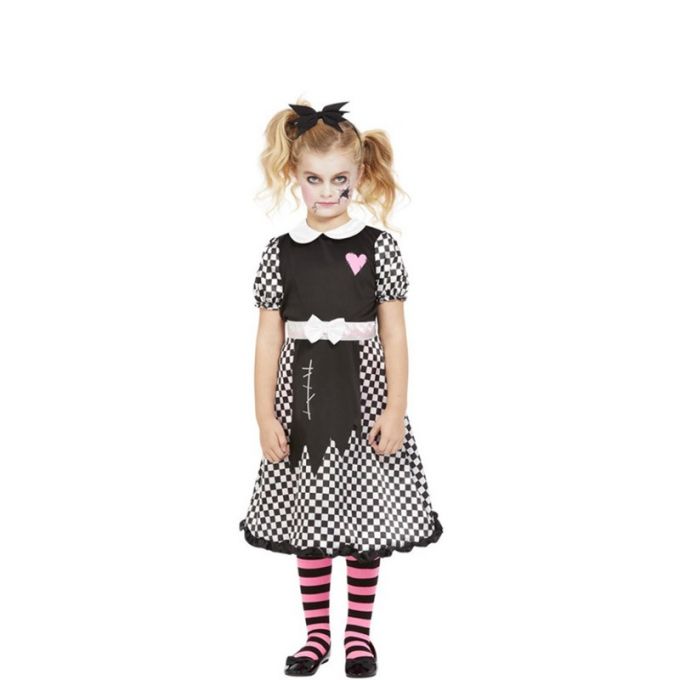 Disfraz de Muñeca Rota negro y blanco para niña . Incluye Vestido y diadema. No incluye Pantis medias ni calzado.