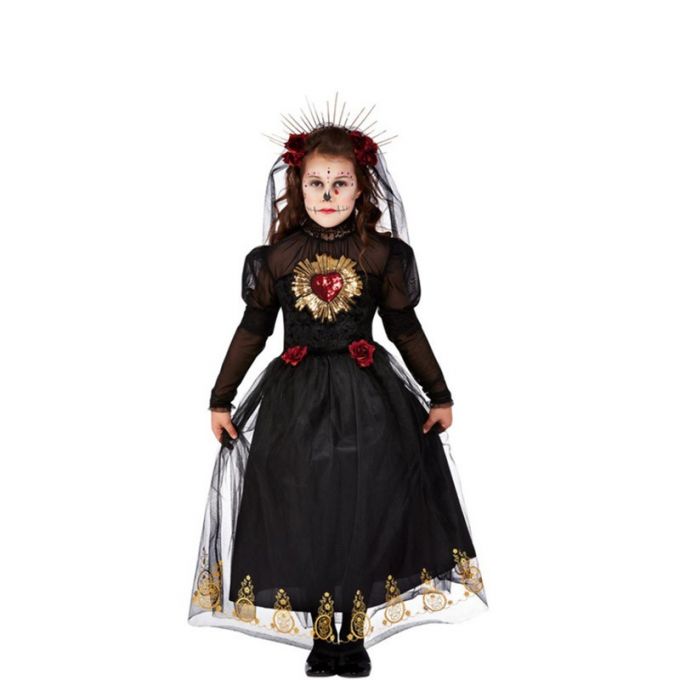 Disfraz de Novia del Día de los Muertos negro para niña. Incluye Vestido y diadema velada.
