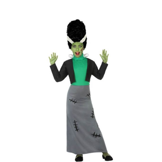 Disfraz de Novia Franky para niña. Incluye chaqueta, vestido y cuello. No incluye peluca ni calzado. Perfecto en fiestas del terror como Halloween.