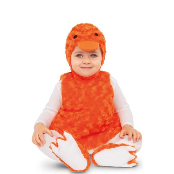Disfraz de Patito o Pato Naranja para bebé. Incluye vestido, gorro y cubrepiés.