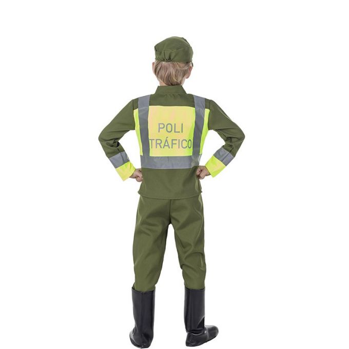 Disfraz de Policía de Tráfico o Guardia Civil para niño. Incluye gorra, chaqueta, cinturón con cartuchera, pantalón y cubrebotas.