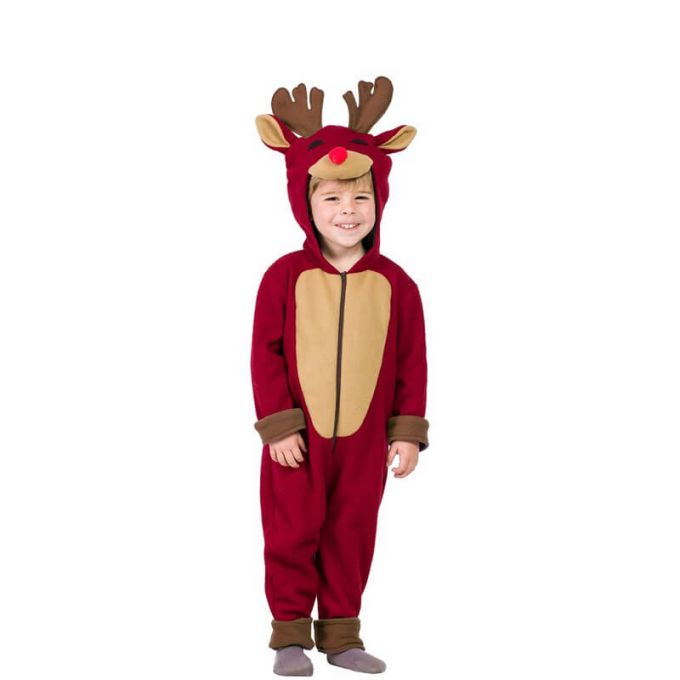 Disfraz de Reno o Ciervo para niño y bebé. Incluye mono con capucha. No incluye calzado. Ideal en la época de las Navidades.