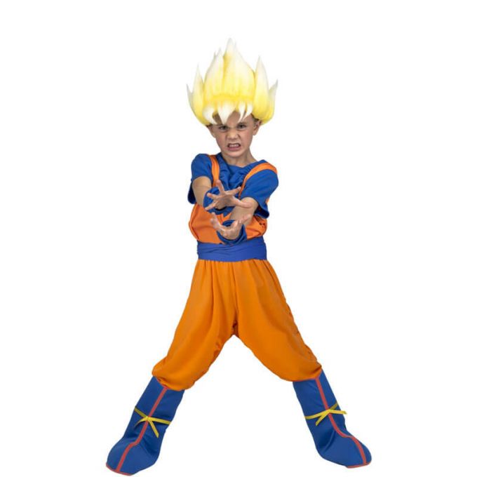 Disfraz de Saiyan Son Goku o Kakarotto de Dragon Ball con peluca para niño.