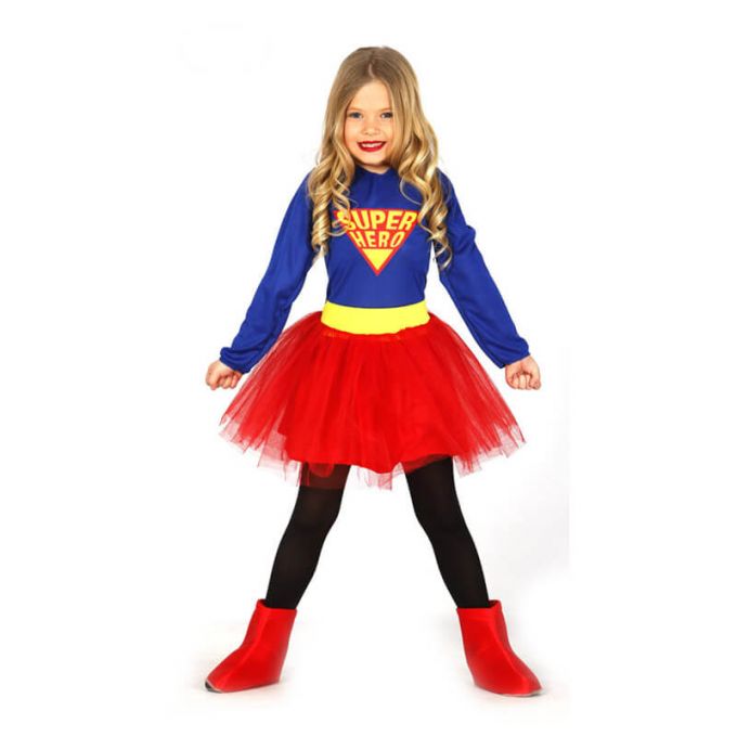 Disfraz de Súper Heroína Azul y Rojo con tutú para niña. Incluye vestido con tutú.