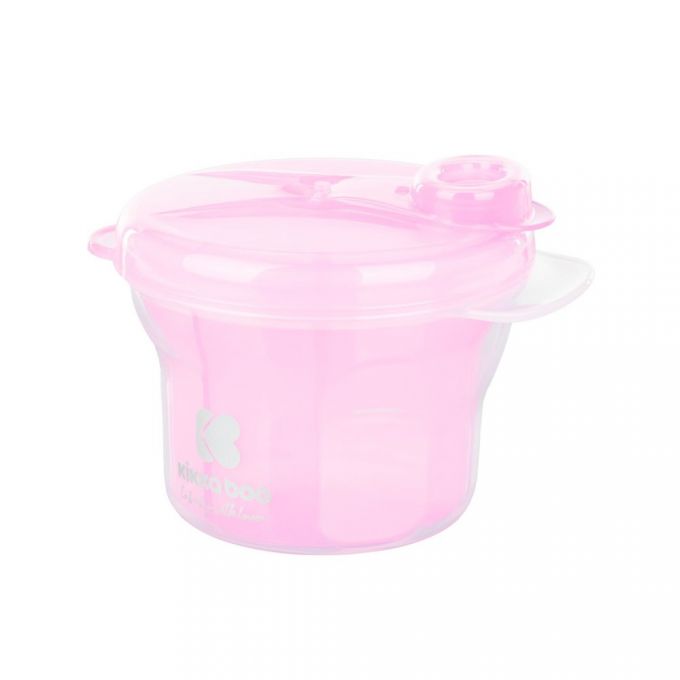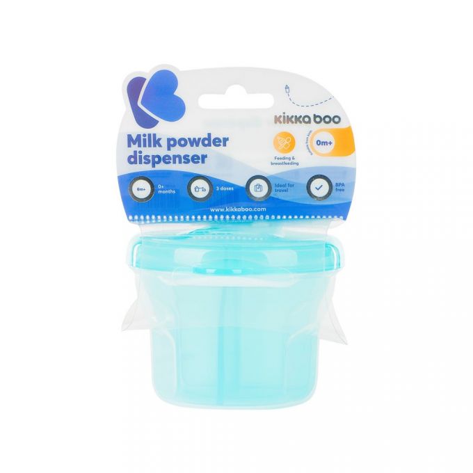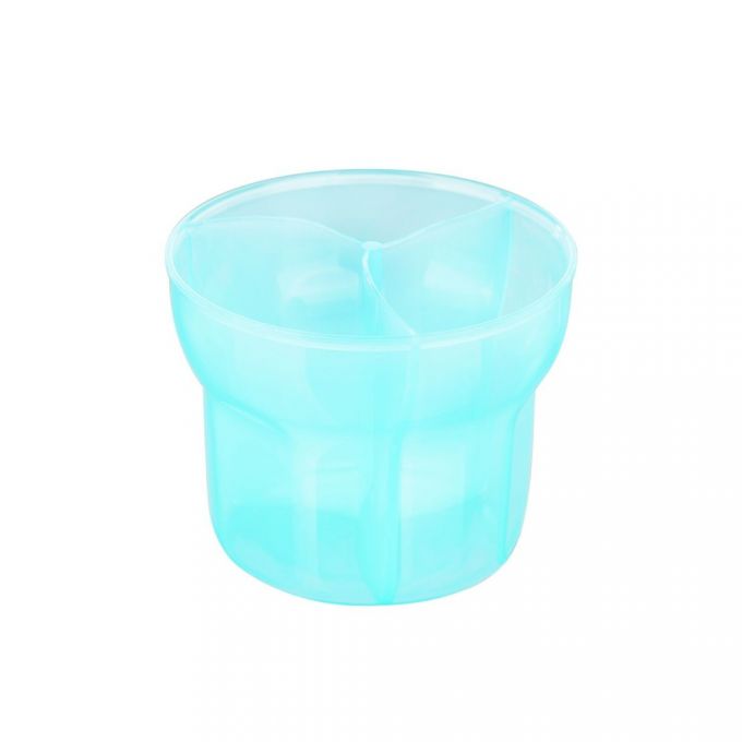 Dispensador de leche en polvo con tres espacios de almacenamiento para dosis de leche en polvo.