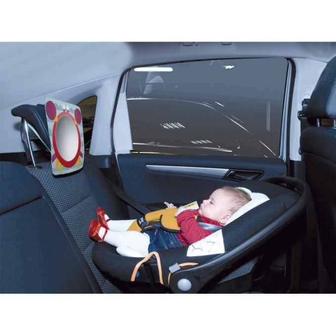Espejo retrovisor infantil de simpático diseño fabricado en plástico para una mayor seguridad. Cuenta con un marco de tela muy colorido que mantendrá entretenido al pequeño durante el trayecto. Es perfecto para sillitas orientadas al sentido contrario de la marcha.