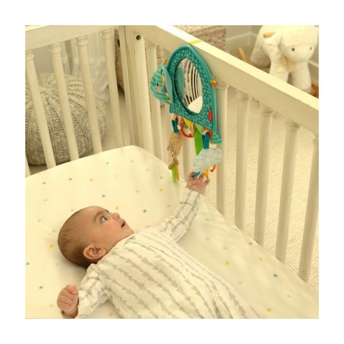 Los prácticos clips se sujetan fácilmente al reposacabezas del automóvil y a la barrera de la cuna.