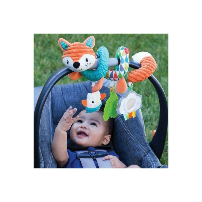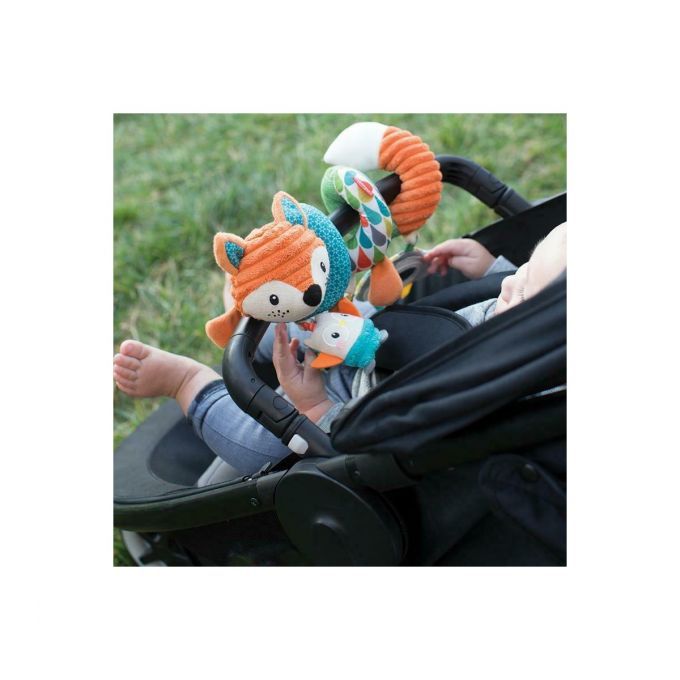 Esta espiral de tacto suave y diferentes texturas es perfecta para colgar en la cuna, carrito o sillita.