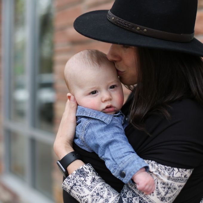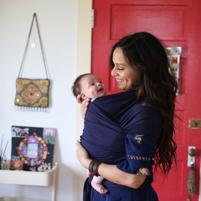 Ajuste personalizado. Cada vez que se anuda el fular se puede acomodar para adaptarlo a los contornos únicos del cuerpo del bebé y del tuyo.