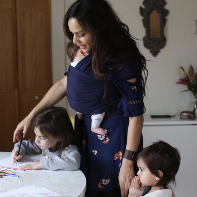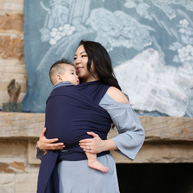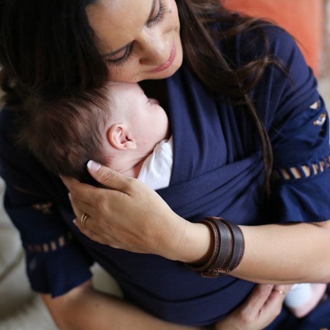 ¡Muy fácil de utilizar! Para todo tipo de papás y mamás pues se realiza un sencillo nudo de base (preanudado) y luego se coloca al bebé sin necesidad de quitarse el fular.