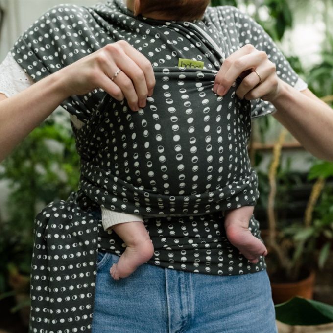 El fular elástico portabebés Boba Wrap es un portabebés ergonómico que consiste en una tela elástica que se ajusta a la perfección y distribuye el peso equitativamente entre los hombros, la cadera y la espalda, por lo que se adapta con gran comodidad a cualquier adulto. Se ajusta perfectamente al cuerpo del bebé y respeta la posición natural adecuada para su desarrollo. Es muy fácil de utilizar, ya que una vez anudado, puedes poner y sacar al bebé sin necesidad de deshacer el nudo. Por todo ello, el fular elástico Boba Wrap es el portabebés que recomendamos para el porteo de recién nacidos.