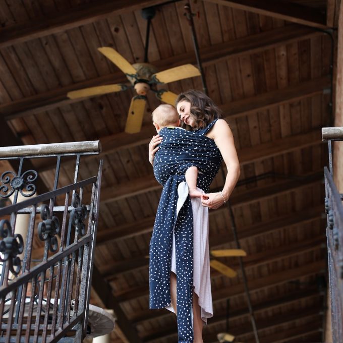 Ajuste personalizado. Cada vez que se anuda el fular se puede acomodar para adaptarlo a los contornos únicos del cuerpo del bebé y del tuyo.