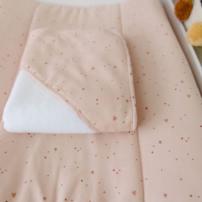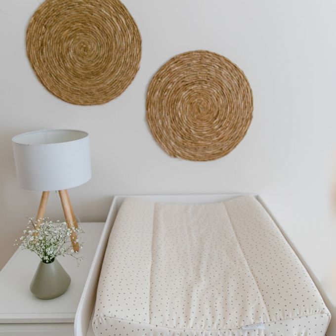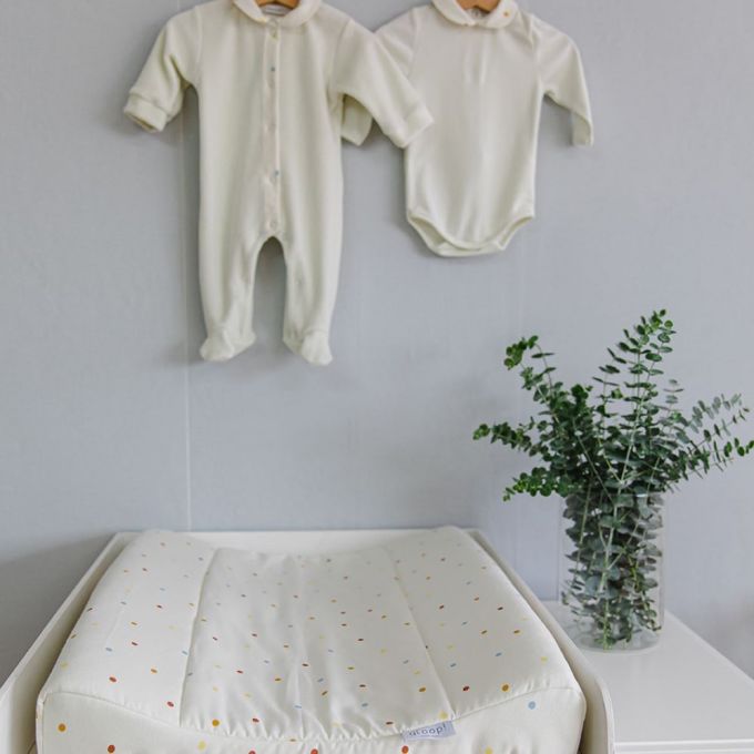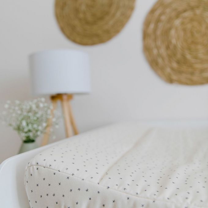 La funda está hecha de nuestro tejido de algodón 100% orgánico certificado y el interior de poliéster.