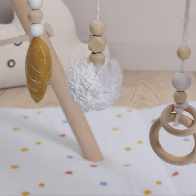 El gimnasio de juegos Baby-Hop de Micuna es el juguete perfecto para que el bebé experimente mediante el juego en sus primeros meses. Gracias a sus difrerentes colgadores podrá jugar y sentir sus diferentes texturas.