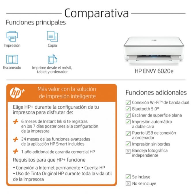 Ficha técnica: HP ENVY 6020e All-in-One Printer.