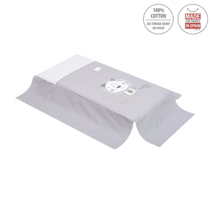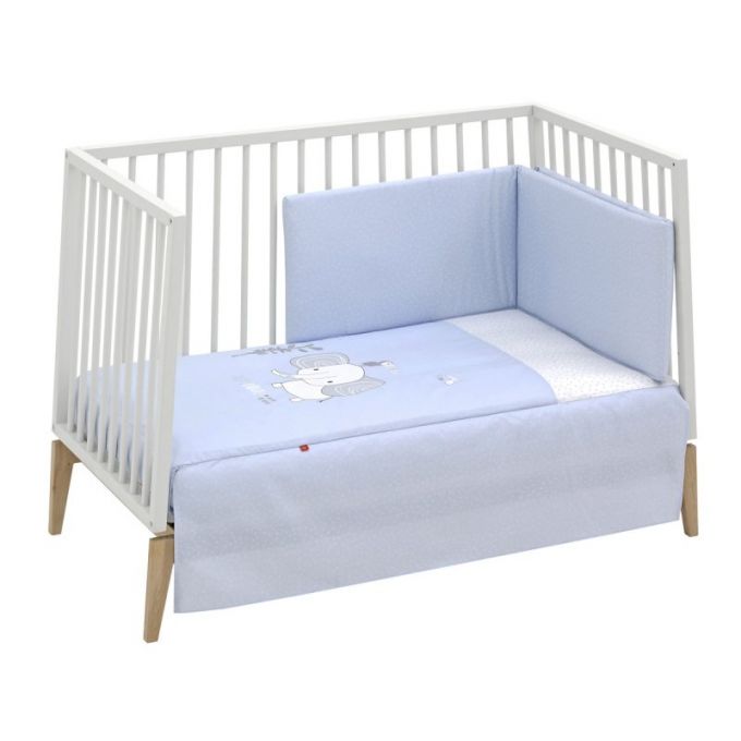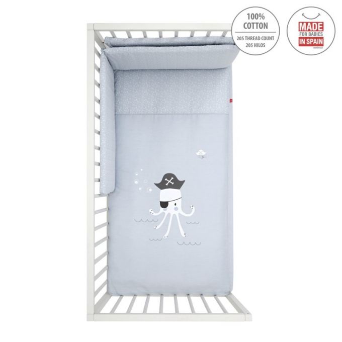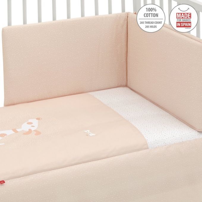 Juego de 2 piezas para vestir la cuna, compuesto por colcha invierno/verano más protector incluye un bonito cojín bordado. La colcha, es la prenda que viste la cuna y cumple el cometido de protección contra el frío como si de una manta o una funda nórdica se tratara. Su cualidad de tener un relleno desenfundable la convierte en una prenda versátil para ser utilizada en invierno y en verano y también ofrece la ventaja de ser lavada con facilidad.
