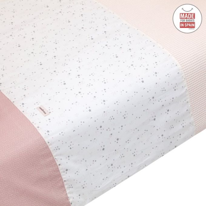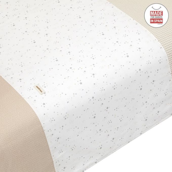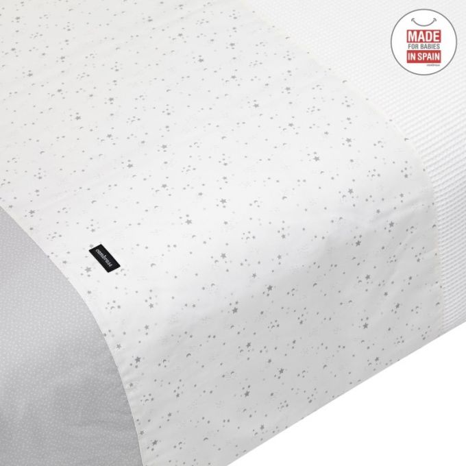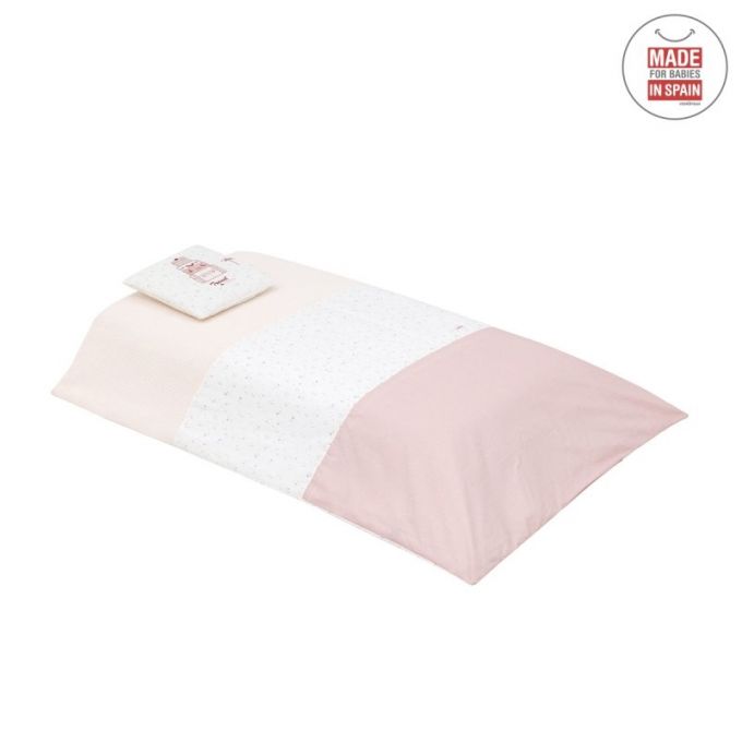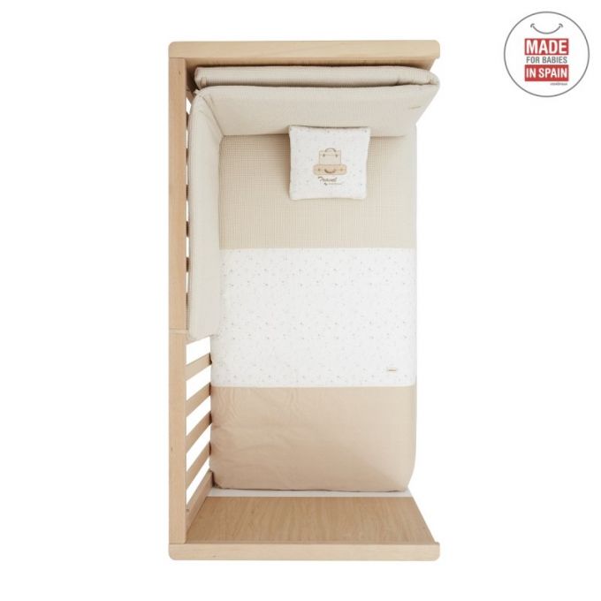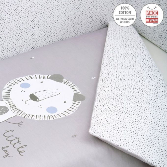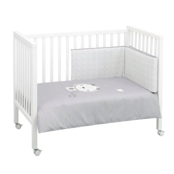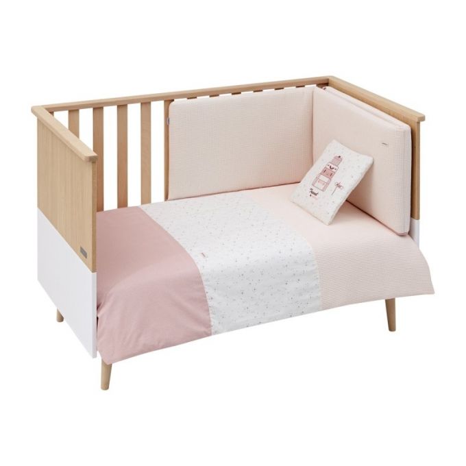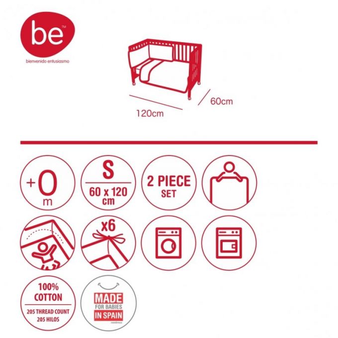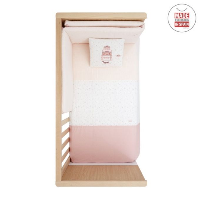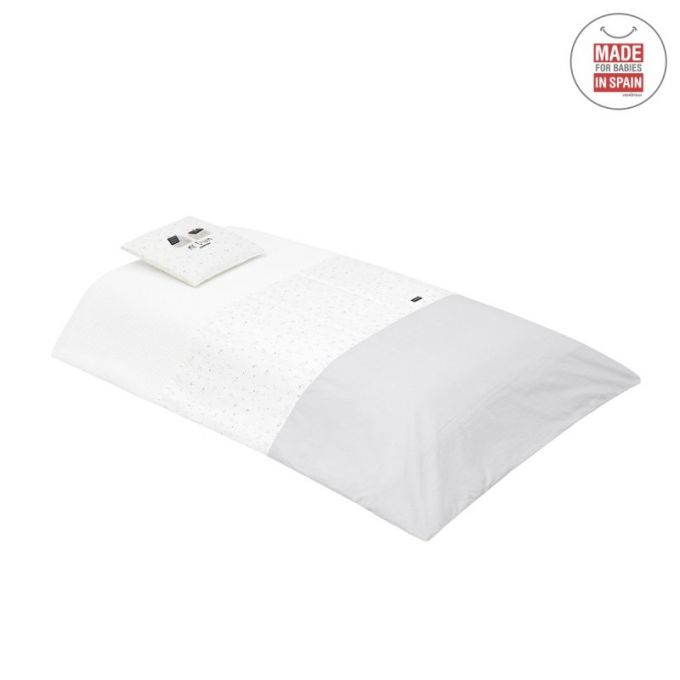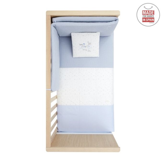 Juego de 2 piezas para vestir la cuna, compuesto por funda nórdica más protector (incluye el relleno) + cojín decorativo. La funda nórdica, es la prenda que viste la cuna y cumple el cometido de protección contra el frío cubriendo a nuestro bebé con una prenda que al incorporar el relleno, la hace especialmente confortable y calidad para sus primeros meses de vida.