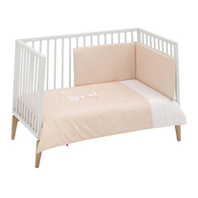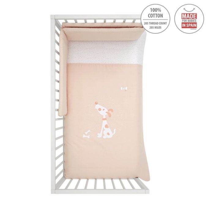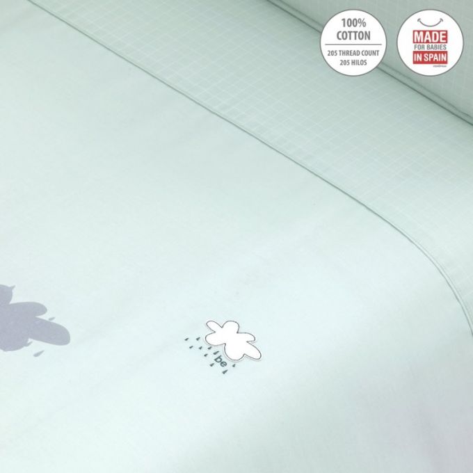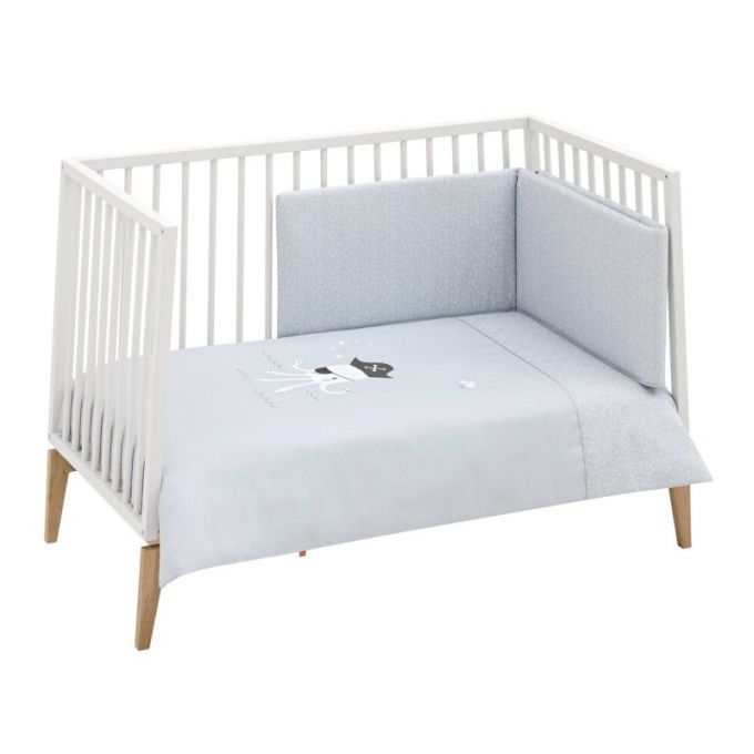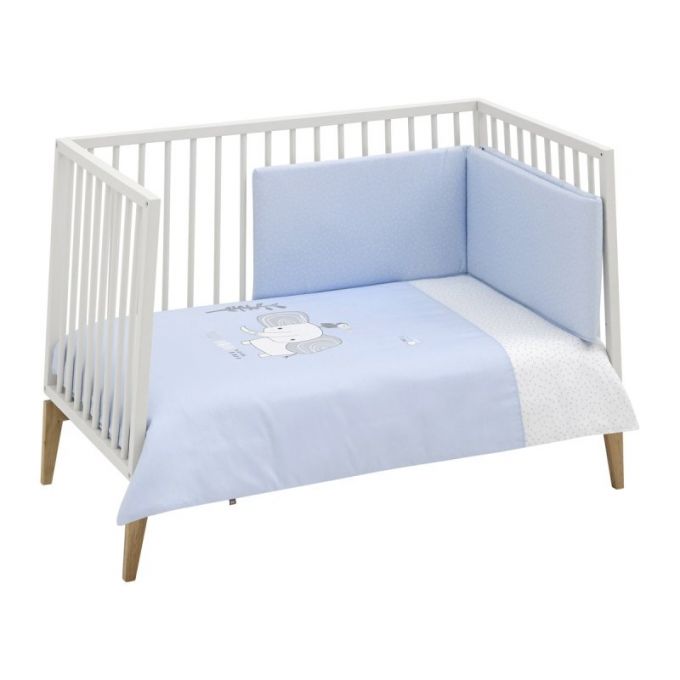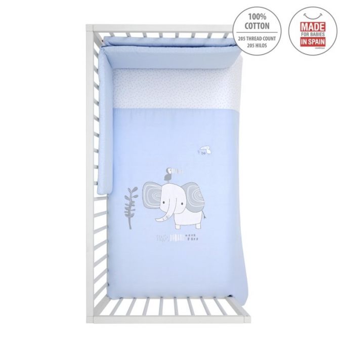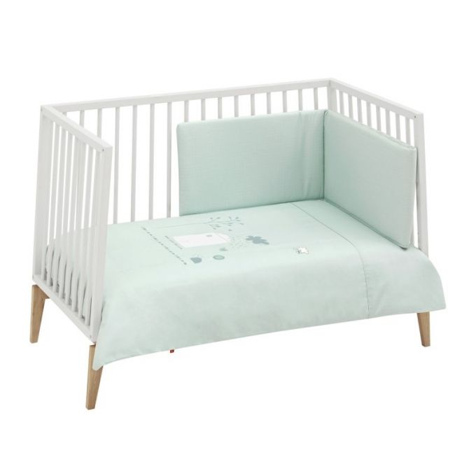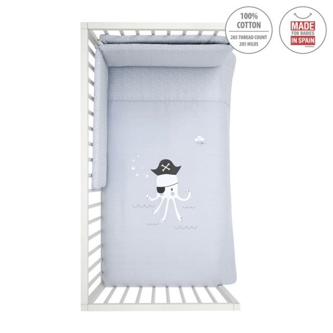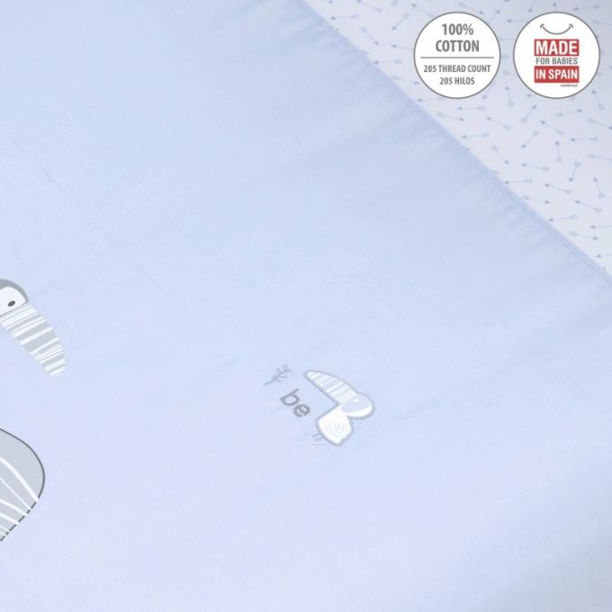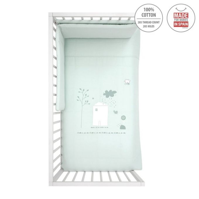 Juego de 2 piezas para vestir la cuna, compuesto por funda nórdica más protector (incluye el relleno) + cojín decorativo. La funda nórdica, es la prenda que viste la cuna y cumple el cometido de protección contra el frío cubriendo a nuestro bebé con una prenda que al incorporar el relleno, la hace especialmente confortable y calidad para sus primeros meses de vida.