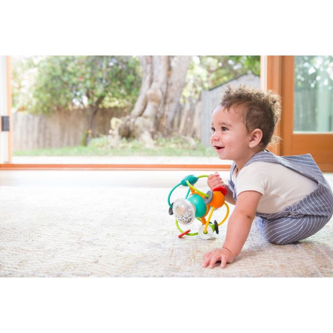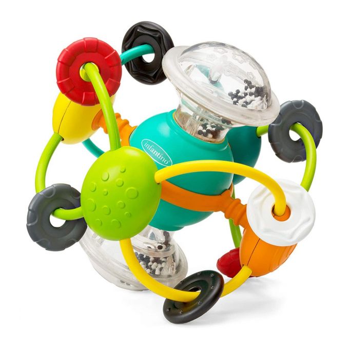 Bolitas sonoras en el centro, fácil agarre y divertidos colores que estimulan al bebé.