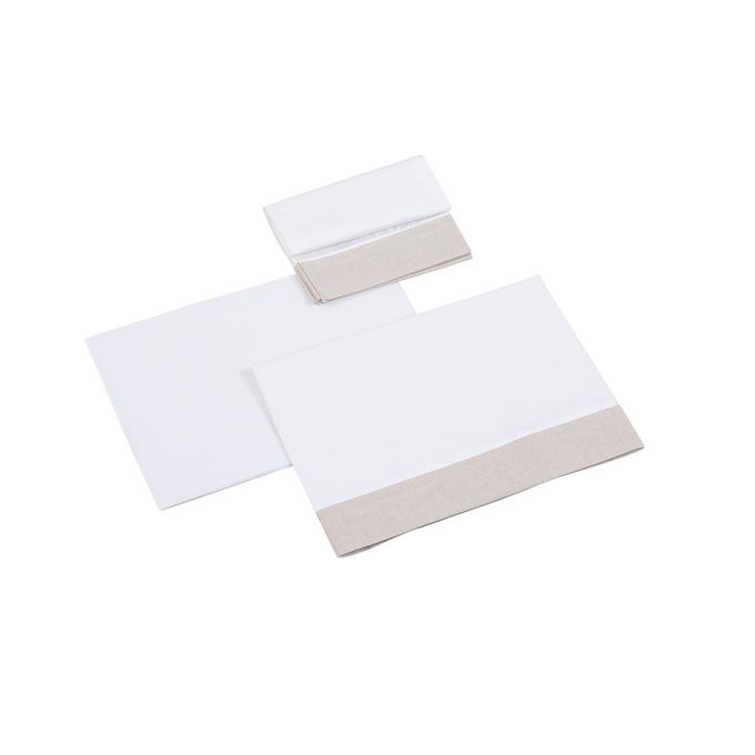 – Juego de sábanas para minicuna de 3 piezas, compuesto por sábana bajera ajustable, encimera y funda almohada.