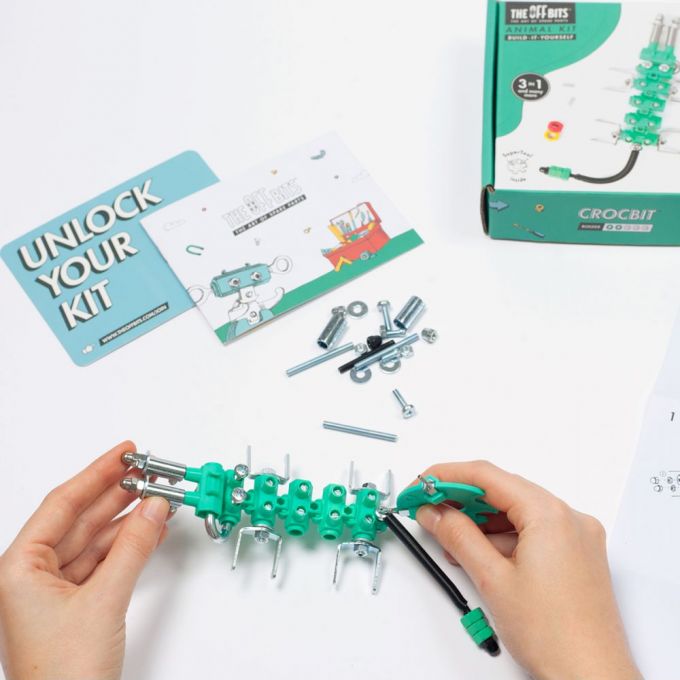 Los Offbits son personajes extravagantes y artilugios de robots creados para ser rediseñados, hechos de trozos y piezas recicladas, impulsados por tu propia creatividad. Cada kit de construcción lleva piezas de distintas formas, colores y tamaños y una Super Herramienta para hacer las construcciones. Sigue las instrucciones visuales y crea tu primer CrocBit, a partir de ahí, ¡deja volar tu imaginación y combínalos como quieras!