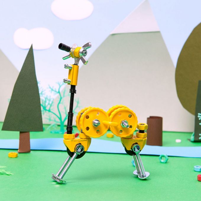 Los Offbits son personajes extravagantes y artilugios de robots creados para ser rediseñados, hechos de trozos y piezas recicladas, impulsados por tu propia creatividad. Cada kit de construcción lleva piezas de distintas formas, colores y tamaños y una Super Herramienta para hacer las construcciones. Sigue las instrucciones visuales y crea tu primer GiraffeBit, a partir de ahí, ¡deja volar tu imaginación y combínalos como quieras!
