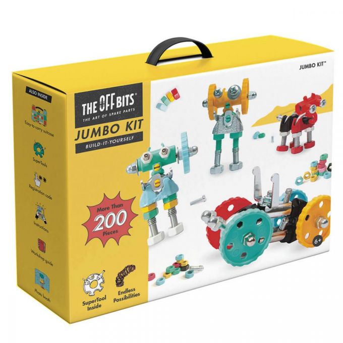 Los Offbits son personajes extravagantes y artilugios de robots creados para ser rediseñados, hechos de trozos y piezas recicladas, impulsados por tu propia creatividad. Esta maleta lleva más de 250 piezas de distintas formas, colores y tamaños y una Super Herramienta para hacer las construcciones. Sigue las instrucciones visuales y crea robots, vehículos, animales... ¡Deja volar tu imaginación y combínalos como quieras!