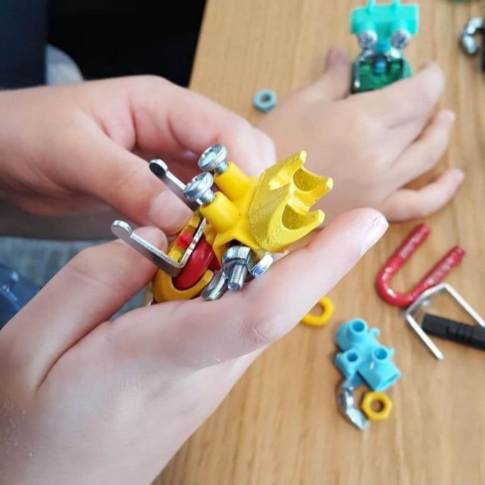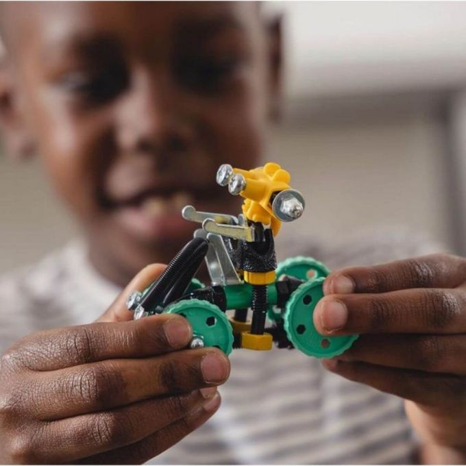 Los Offbits son personajes extravagantes y artilugios de robots creados para ser rediseñados, hechos de trozos y piezas recicladas, impulsados por tu propia creatividad. Esta maleta lleva más de 150 piezas de distintas formas, colores y tamaños y una Super Herramienta para hacer las construcciones. Sigue las instrucciones visuales y crea tus Offbits del espacio, a partir de ahí, ¡deja volar tu imaginación y combínalos como quieras! Incluye un photocall de cartón.