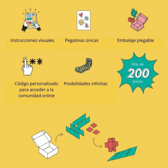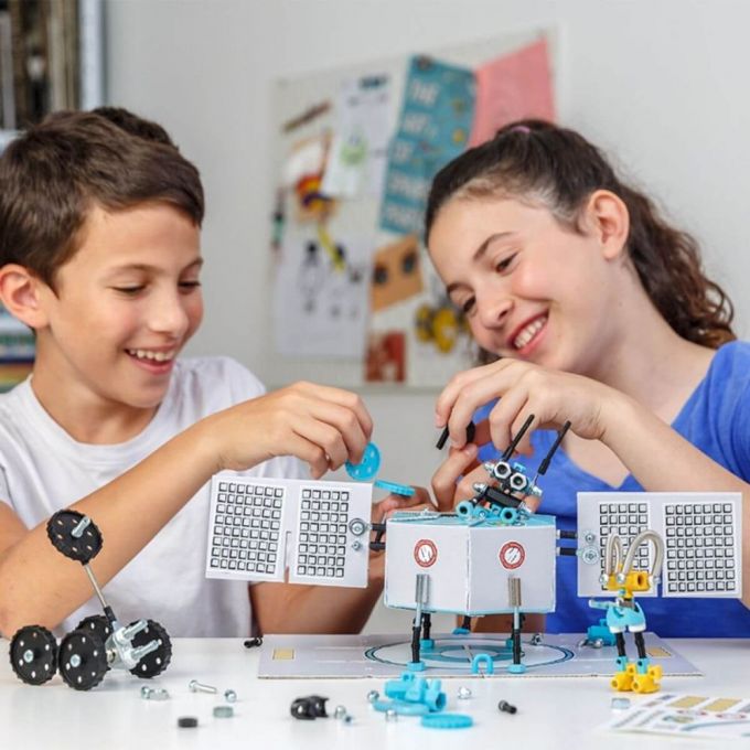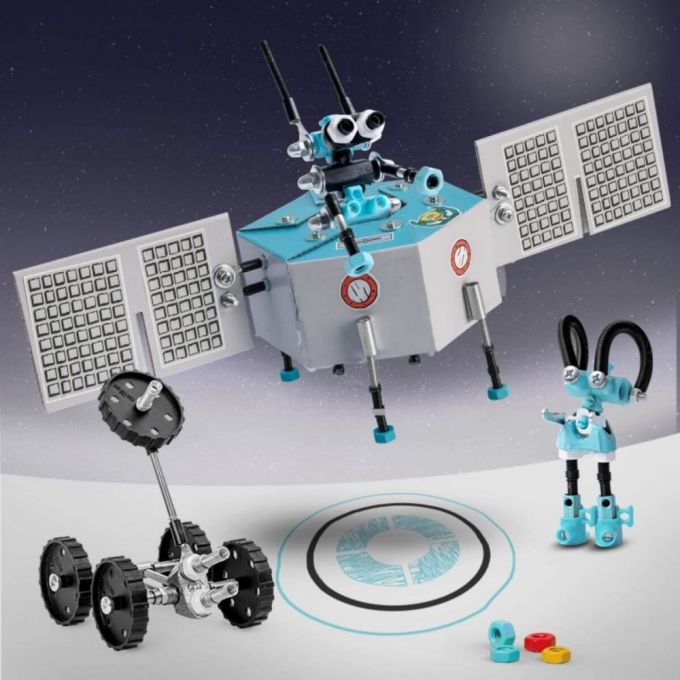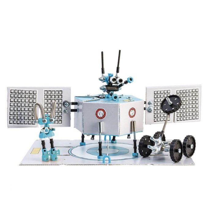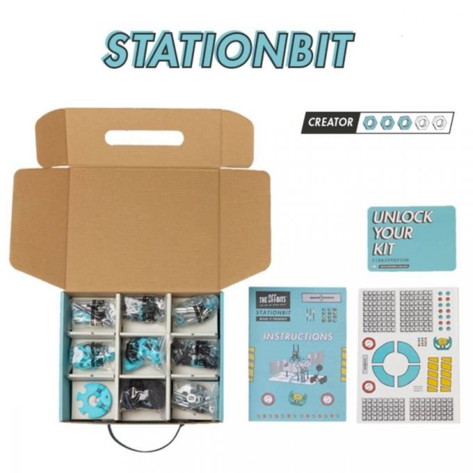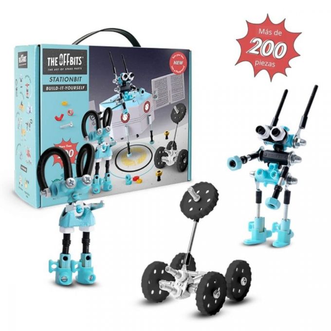 Los Offbits son personajes extravagantes y artilugios de robots creados para ser rediseñados, hechos de trozos y piezas recicladas, impulsados por tu propia creatividad. Ahora puedes usar el packaging de la caja y las pegatinas incluidas para crear una Estación espacial y sus astronautas, SaturnBit y DroidBit, así como RoverBit, su vehículo para explorar el terreno espacial. Con las más de 200 piezas del kit y la Super Herramienta podrás crear muchas construcciones más.