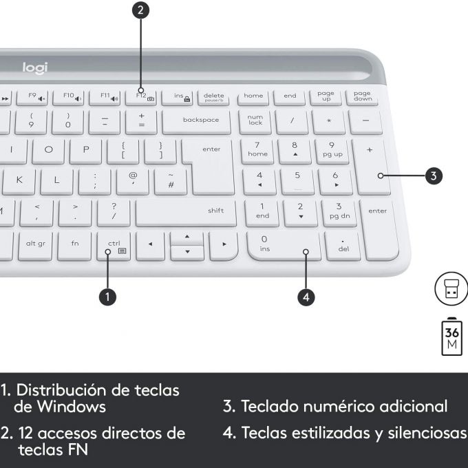TECNOLOGÍA INALÁMBRICA SENCILLA Y FIABLE: Un simple receptor USB Plug and Play ofrece una estable conexión inalámbrica de 2,4 GHz con un radio de acción de 10 m2. Esto significa un escritorio despejado y sin cables, y la libertad de organizar los dispositivos como se quiera.