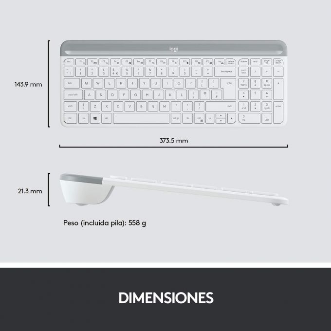 Dimensiones del teclado: 373,5 x 143,9 x 21,3 mm.