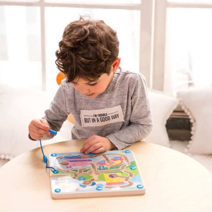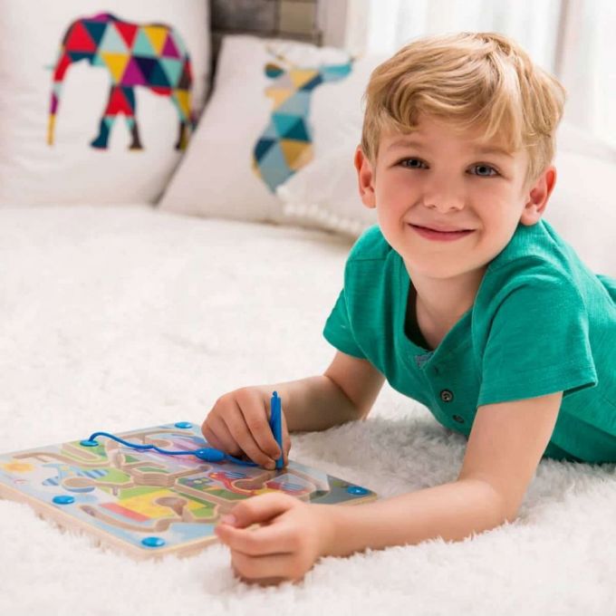 El laberinto magnético ciudad, ayudará a desarrollar habilidades de asociación y coordinación de colores mientras se divierte usando la varita magnética para mover las bolas hacia el objeto con colores iguales.
