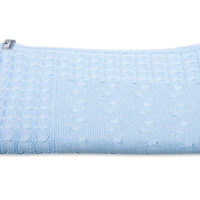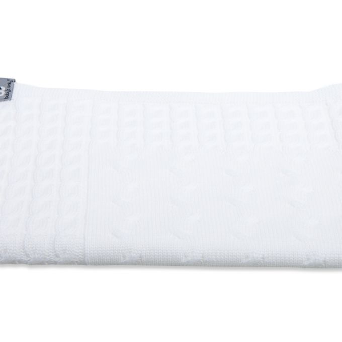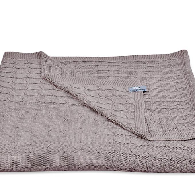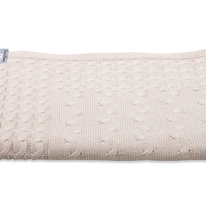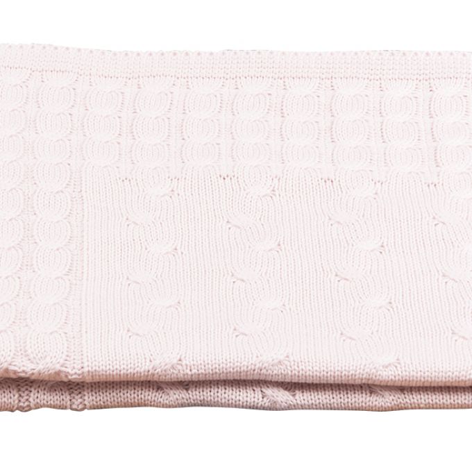 La manta de bebé Cable está tejida con un fino patrón de cables.