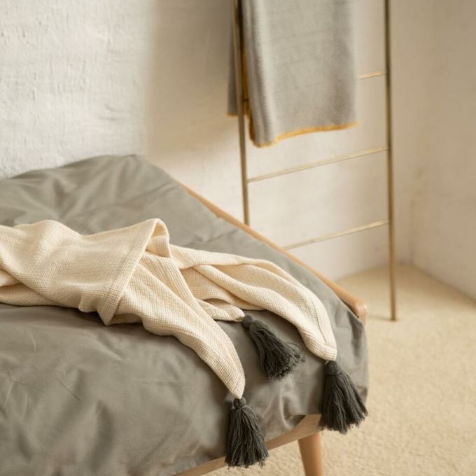 Manta en algodón de punto, con divertidos pompones.