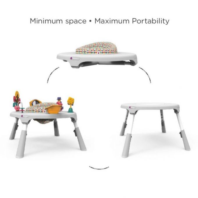 Centro de actividades de viaje plegable. ¿Alguna vez pensaste que podías viajar con tu centro de actividades? Ya sea que quieras ir en un viaje de fin de semana o simplemente guardar tu PortaPlay. Las patas patentadas del PortaPlay se pliegan hacia adentro rápida y fácilmente, lo que te permite guardarlo en el maletero o en el armario. Adelante, pero ningún otro centro de actividades te dará esta libertad.