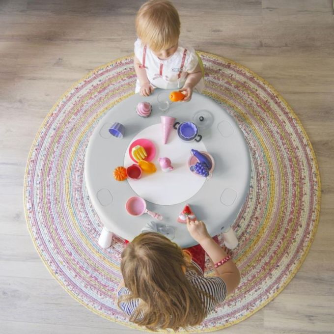 Crece conmigo. Cambia el asiento con la parte superior de la mesa proporcionada para convertirla en una mesa de juego para niños de hasta 5 años de edad. Utilízalo con los taburetes PortaPlay para dibujar, hacer bocetos, proyectos y cualquier actividad imaginativa que tu pequeño pueda soñar.