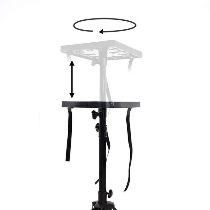 Construido para proyector, con estructura de acero y acabado en negro.