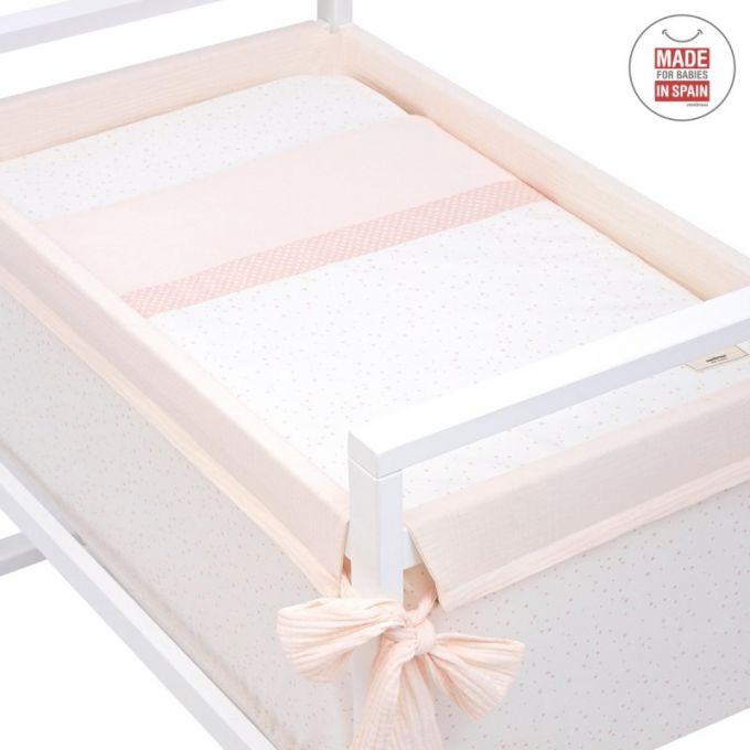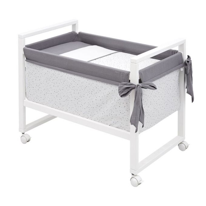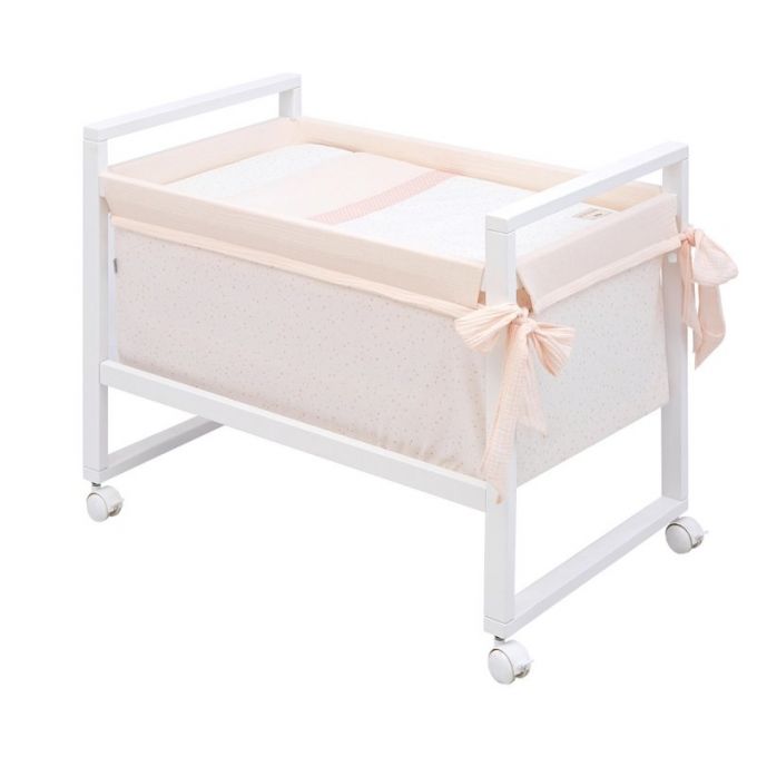 La minicuna Next de Cambrass, indicada para los primeros meses de vida del bebé, se distingue por su estructura cuadrada de madera de haya y su revestimiento textil coordinado con los textiles de las colecciones Cambrass. Sus medidas son 55 x 88 x 72 cm. de altura e incorpora cuatro ruedas para su fácil manejo y traslado por toda la casa así como una base de madera de 5 mm. que funciona como somier. Según normativa, este producto soporta bebés con un peso de hasta 14 kg.