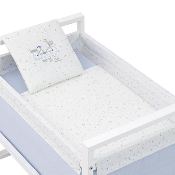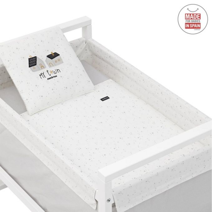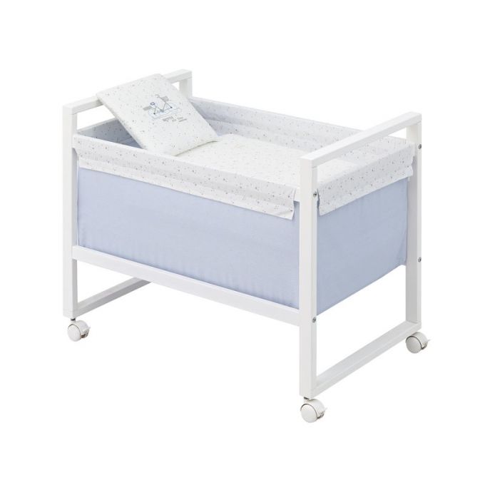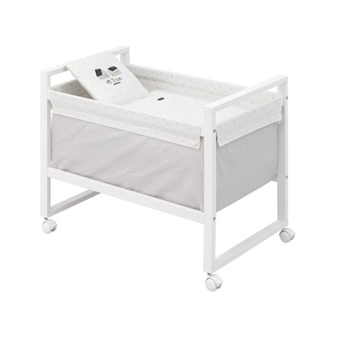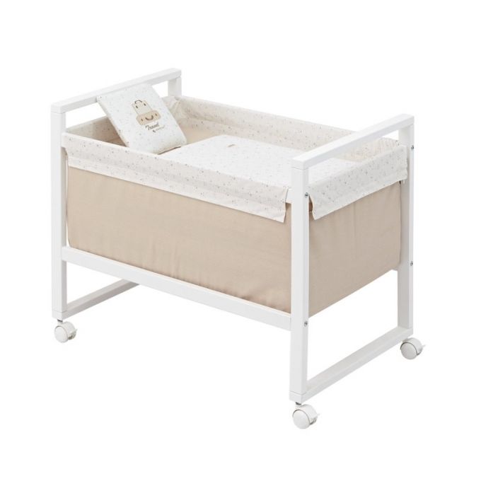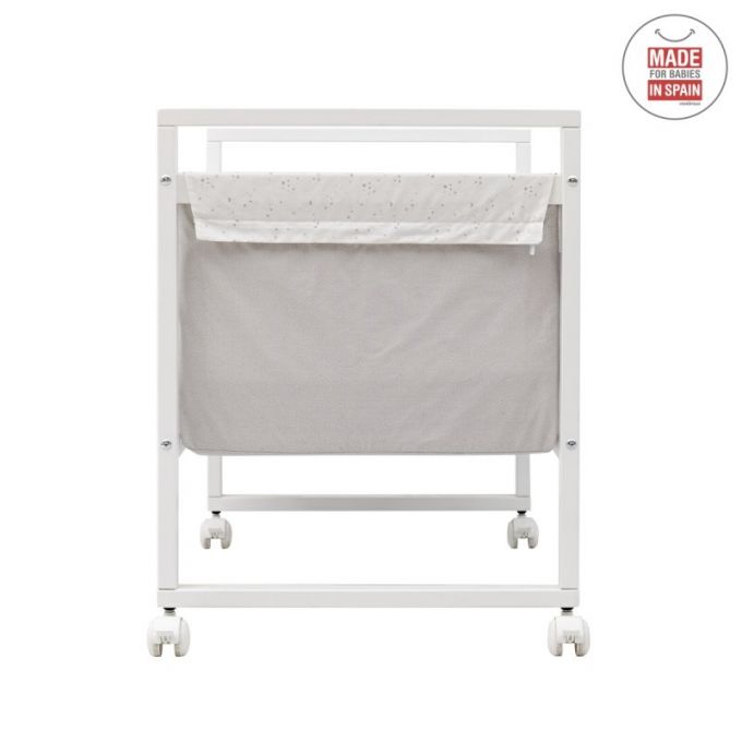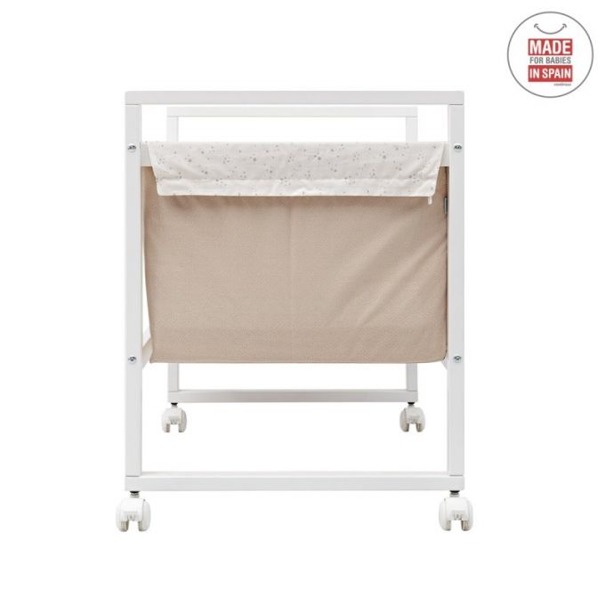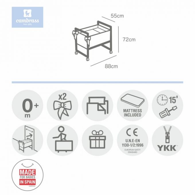 La minicuna Next de Cambrass, indicada para los primeros meses de vida del bebé, se distingue por su estructura cuadrada de madera de haya y su revestimiento textil coordinado con los textiles de las colecciones Cambrass. Sus medidas son 55 x 88 x 72 cm. de altura e incorpora cuatro ruedas para su fácil manejo y traslado por toda la casa así como una base de madera de 5 mm. que funciona como somier. Según normativa, este producto soporta bebés con un peso de hasta 14 kg.