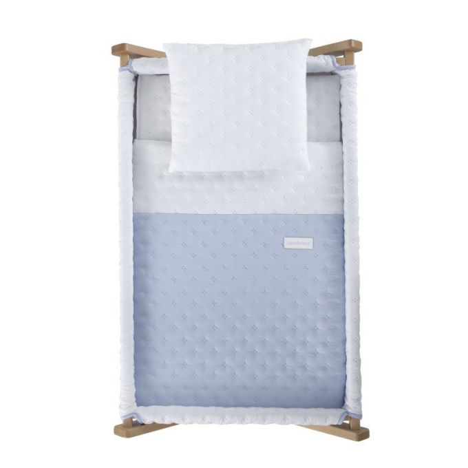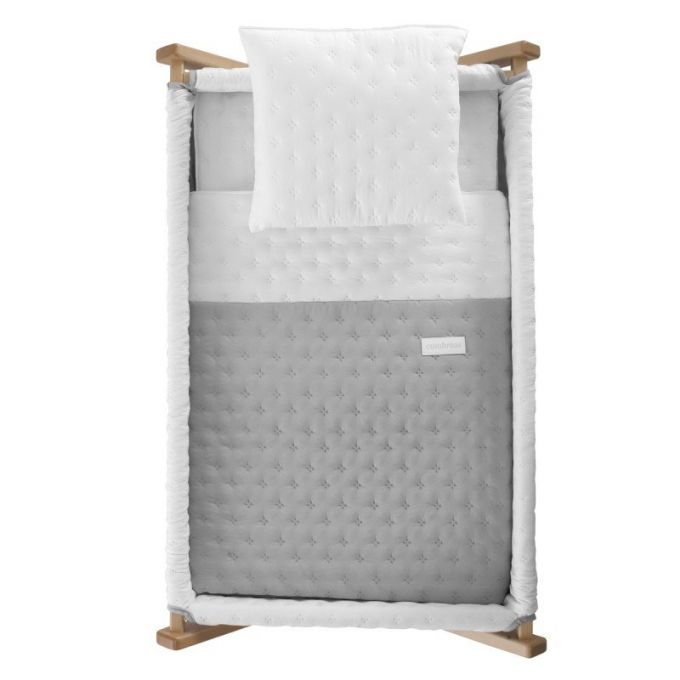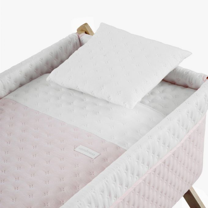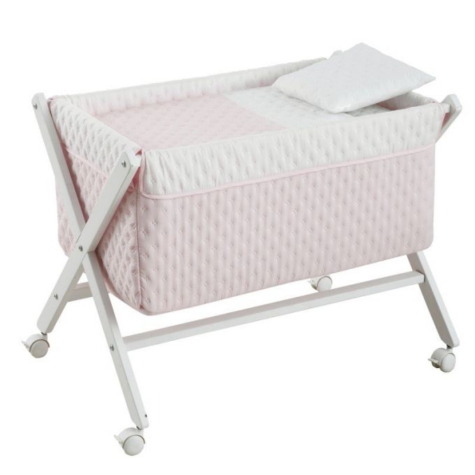 La minicuna con estructura en forma de aspa de Cambrass está fabricada en madera de haya. Permite el descanso del bebé en cualquier estancia de la casa durante los primeros meses de vida gracias a la movilidad que le aportan las ruedas (con freno). Otros aspectos que hacen especialmente funcional esta minicuna, incluye almohada, colchón y somier de madera de 5mm, soporte de madera y su vestidura cosida que incluye la colcha con relleno extraíble para su lavado o para el uso invierno / verano.