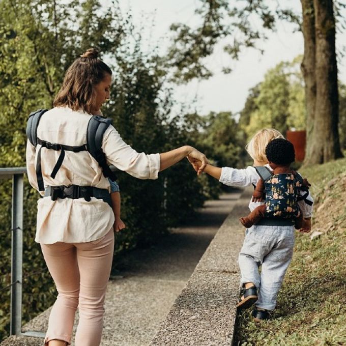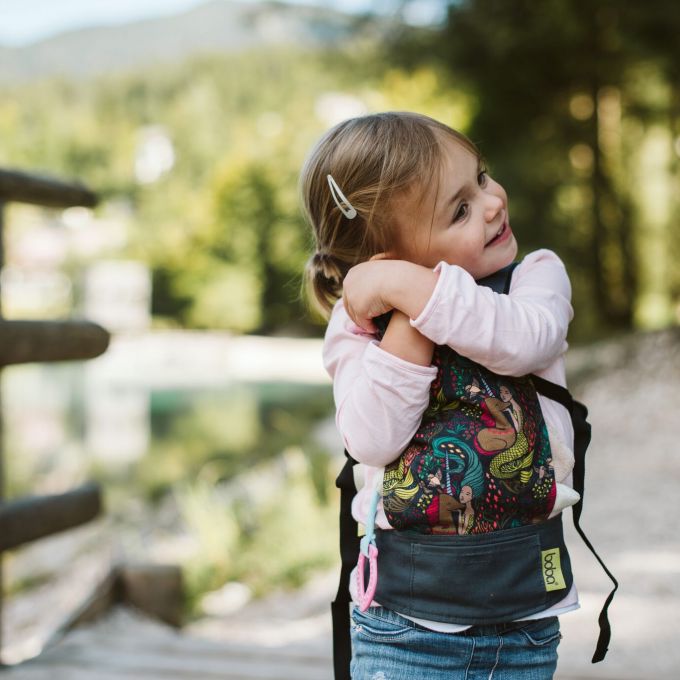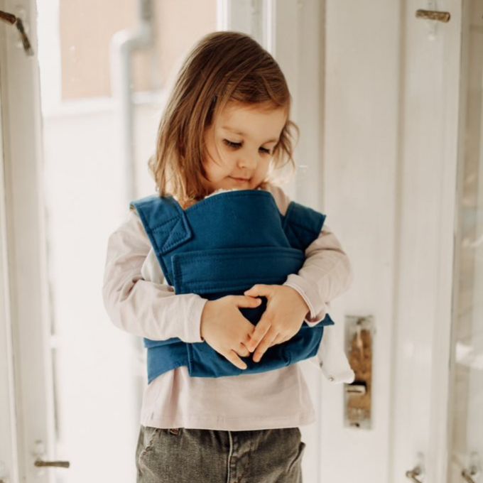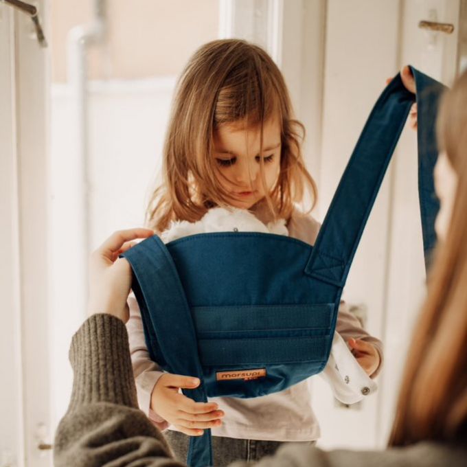 A los niños les encanta imitar lo que hacemos los adultos, así, con esta mochila, llevarán cerca a sus muñecas, igual que papá y mamá, cuando portean al bebé. La mini Marsupi es un portabebés de juguete para llevar los muñecos.