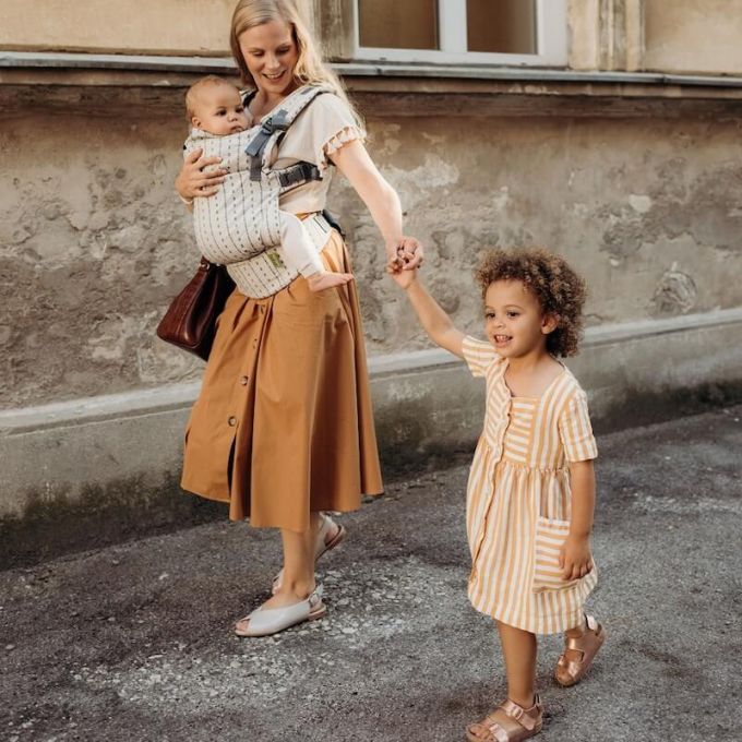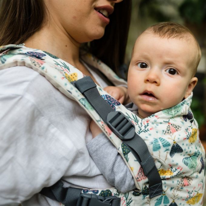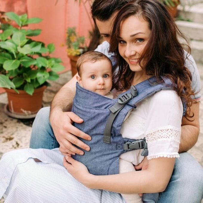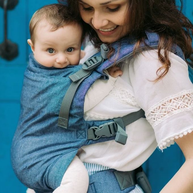 Con correa para el pecho ajustable para garantizar una experiencia de porteo flexible y cómoda.