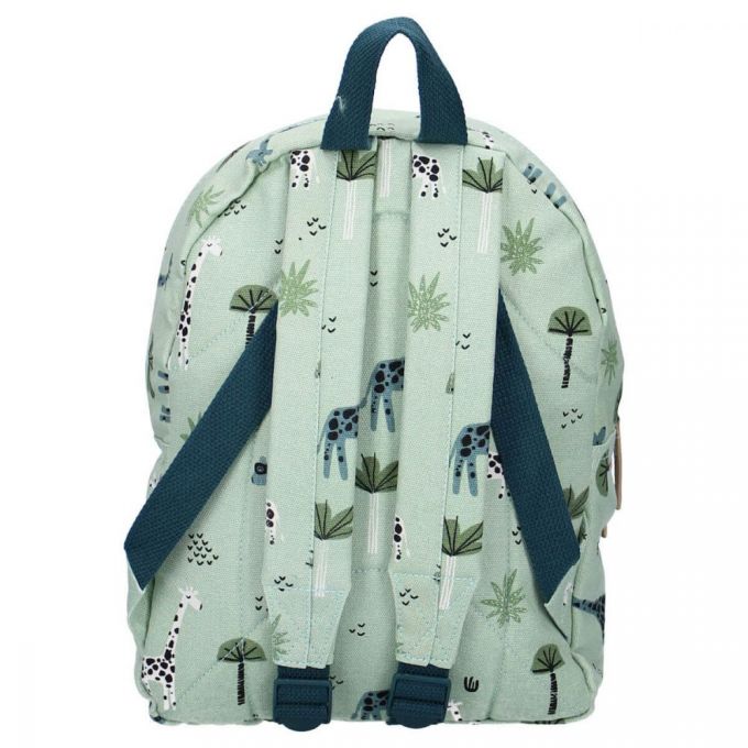 Mochila de color verde con un dulce estampado de jirafas. Es perfecta para que tu peque vaya al colegio, de excursión o de visita a casa de los abuelos. La mochila tiene un espacioso compartimento principal donde se puede guardar el material escolar, un lunch box y una botella de agua. Dispone de bolsillo exterior, las correas del hombro son ajustables y puedes colgarla fácilmente por el asa superior.