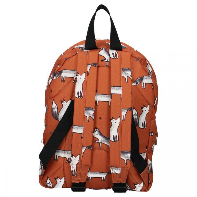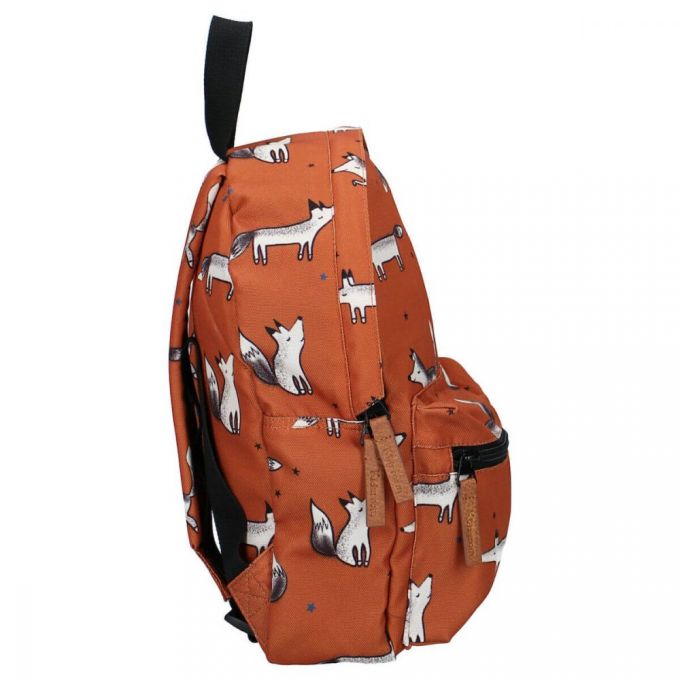 Mochila de color marrón con un divertido estampado de zorros blancos. Es perfecta para que tu peque vaya al colegio, de excursión o de visita a casa de los abuelos. La mochila tiene un espacioso compartimento principal donde se puede guardar el material escolar, un lunch box y una botella de agua. Dispone de bolsillo exterior, las correas del hombro son ajustables y puedes colgarla fácilmente por el asa superior. Esta mochila está fabricada a partir de botellas de plástico PET recicladas, por lo que se trata de una mochila sostenible que contribuye a reducir la generación de residuos. El material de la mochila proviene de Waste2Wear, que se compromete a reducir los residuos de plástico y se esfuerza por lograr una economía circular. Durante la producción de las materias primas se utiliza un 70% menos de energía, un 75% menos de CO2 y un 86% menos de agua que en la producción de otro tipo de materiales textiles. En esta producción, los residuos plásticos se convierten en telas y productos textiles innovadores que se utilizan para hacer esta mochila.