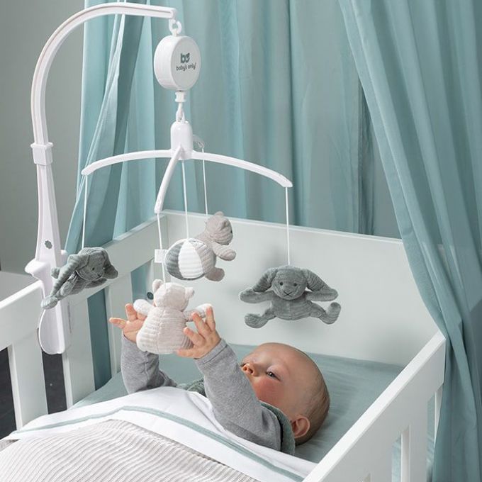 Este móvil musical encaja perfectamente con los otros accesorios de cama y parque de la colección Sense.