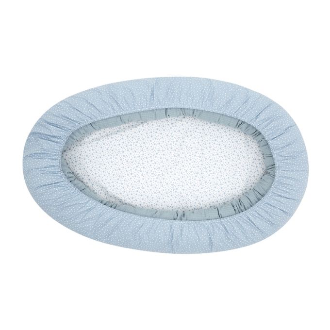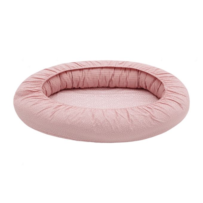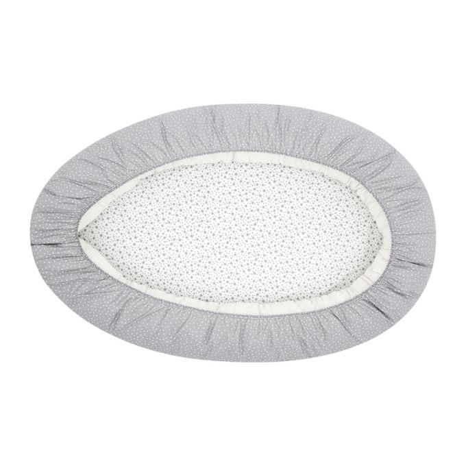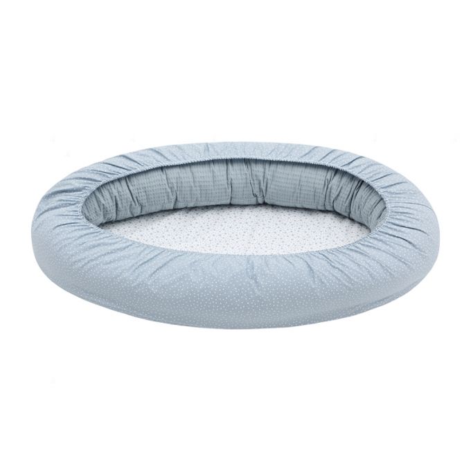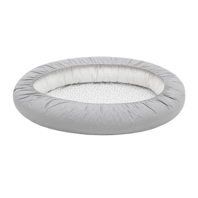 También se puede desmontar y la parte lateral (cojín) sirve como cojín de lactancia y la parte inferior como un cambiador para la casa. El cojín está relleno de fibras huecas para la máxima adaptación y la base, lleva una colchoneta plastificada para poder gastarlo luego como cambiador. Se puede lavar todo el textil en lavadora y secadora.