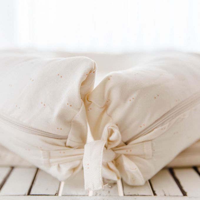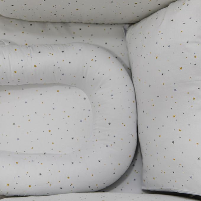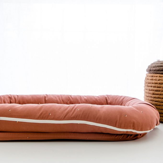 Instrucciones de seguridad: Siempre debe usarse con supervisión. El bebé siempre debe colocarse con la cabeza contra la parte superior y el vientre hacia arriba. Asegúrese siempre de que la cama nido esté colocada sobre superficies firmes y lisas. Haga uso de camas nido en superficies elevadas. Siempre coloque al bebé boca arriba para que descanse o duerma. Mantenga las almohadas u objetos lindos alejados durante el sueño del bebé.