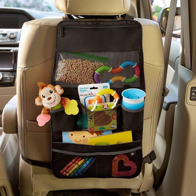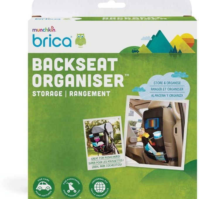 Con el Organizador de respaldo y sillita de doble propósito de Brica by Munchkin podrás organizar las cosas con mucha más facilidad. No solo ofrece una solución de almacenamiento inteligente para mantener tu asiento trasero libre de trastos, sino que también se cuelga desde los asientos del conductor o copiloto para evitar que se rayen. Este práctico organizador sirve también para la sillita, simplemente colócalo cuando necesites un lugar de almacenamiento extra durante salidas largas. Tendrás un sitio para cada cosa y será muy fácil acceder a ellas.